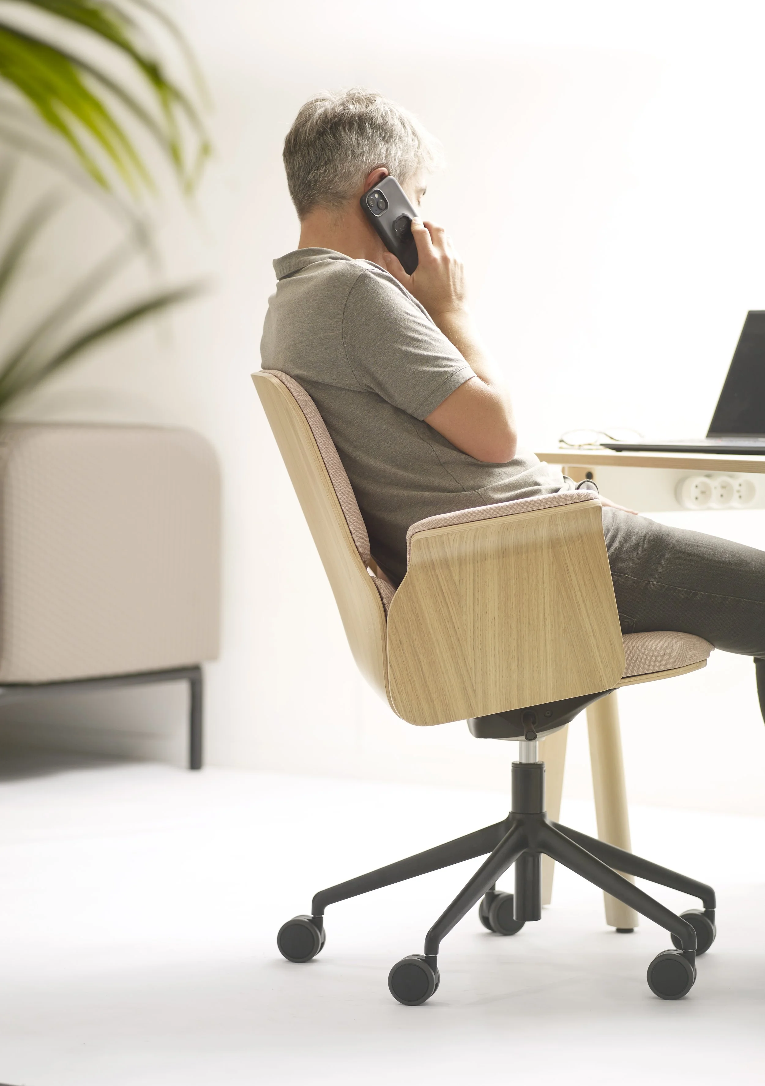 Pour l’entreprise, l’adoption massive du télétravail implique l’obligation de repenser les lieux, en offrant plus de convivialité, de lien avec la nature, et une ambiance plus décontractée (18% plébiscitent des espaces et des équipements plus chaleureux, qui ne font pas « travail »). C’est cette interrogation autour du confort qui a mené Sokoa, expert français du siège professionnel basé au Pays basque, et La Chaise Française, spécialiste de la chaise minimaliste en bois et tissu dans l’Aube, à s’unir. L’objectif ? La création d’un modèle hybride de siège de bureau, utilisable aussi bien dans des espaces de travail qu’en résidentiel.
